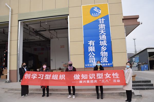 在慶祝三八婦女節(jié)儀式上,集團(tuán)公司副董事長(zhǎng)鄭龍和副總經(jīng)理蘭小偉為全體女職工發(fā)放了福利并合影。