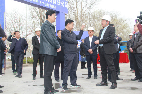 2019年3月27日下午,平?jīng)鍪形睍?shū)記、市長(zhǎng)王奮彥、市委常委、崆峒區(qū)委書(shū)記陳鐸、市政府秘書(shū)長(zhǎng)薛曉宏等市委領(lǐng)導(dǎo)及平?jīng)鍪泄I(yè)園區(qū)管委會(huì)主任馬春寧等園區(qū)主要領(lǐng)導(dǎo)一行人蒞臨甘肅振興·天通電子(物流)產(chǎn)業(yè)園項(xiàng)目施工現(xiàn)場(chǎng)指導(dǎo)工作。